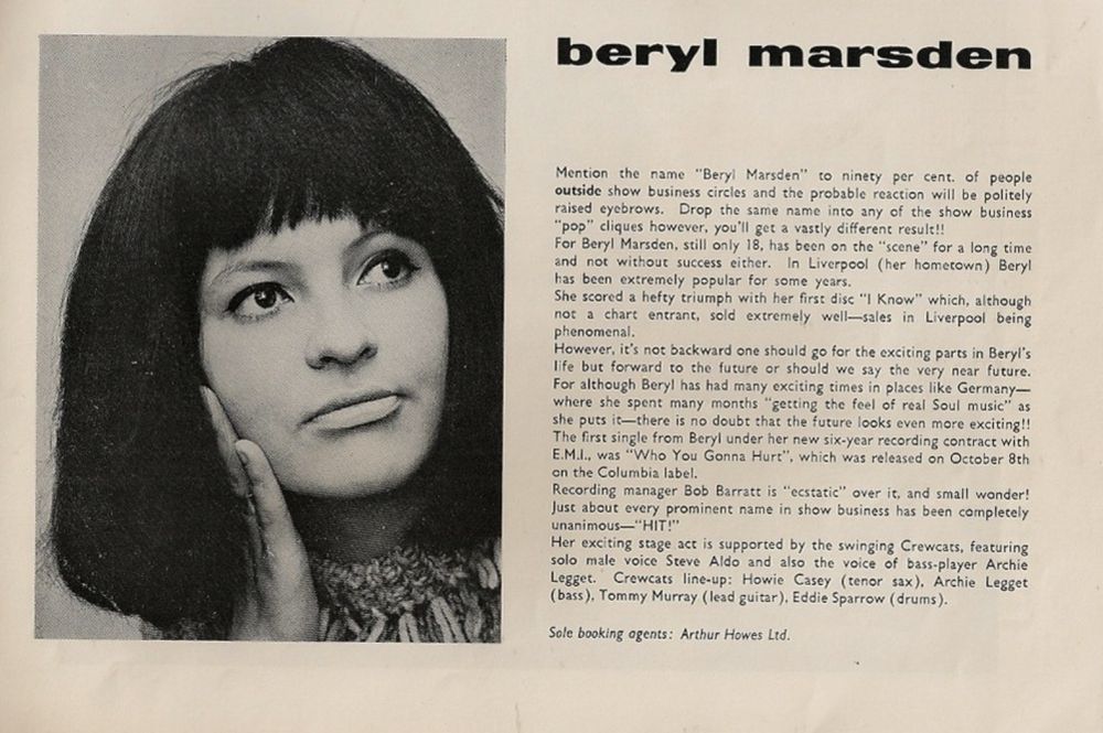 Jungstar Beryl Marsden gehörte zu den beliebtesten Sängerinnen Liverpools, sie stand u.a. mit den Undertakers, Farons Flamingos sowie Lee Curtis auf der Bühne.