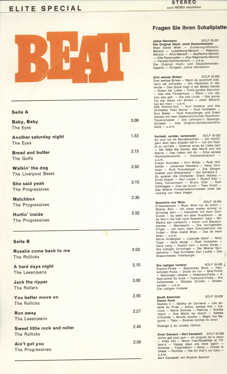 Also, demnach sind die Liverpool Beats tatsächlich Engländer? Ich hatte daran immer gezweifelt, da ja um 1964 so manche nicht-englische Band von Plattenfirmen als "original aus Liverpool" oder ähnlich verkauft wurde... auch und gerade der Deutschen Vogue würde ich so etwas durchaus zutrauen. :roll: