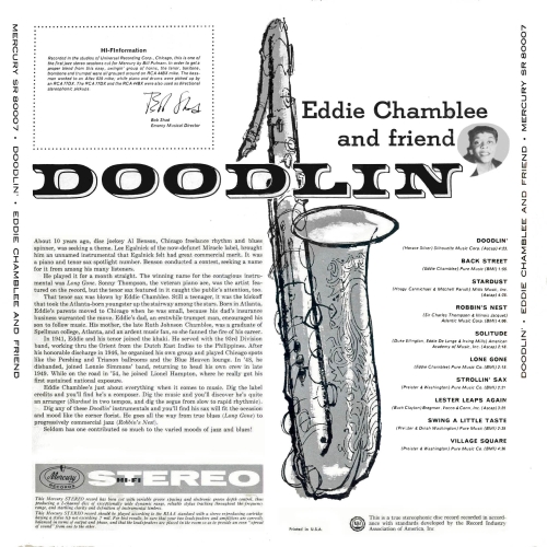 Der Jazz-Musiker (Tenor-Saxophon, Klarinette, Vokal) Eddie Chamblee wurde am 24. Februar 1920 in Atlanta, Georgia, als Edwin Leon Chamblee geboren und verstarb am 1. Mai 1999 in New York City, New York. Vorbelastet von seinen Eltern, Vater war Trompeter und die Mutter Pianistin, wandte er sich bereits mit zwölf dem Saxophon-Spiel zu. In Chicago wo er aufwuchs besuchte er die Wendell Phillips Highschool. Auf der chicagoer Universität studierte er ein Jahr lang die Rechte, war aber nebenbei als Musiker tätig. Auch wärend des Wehrdienstes war er Mitglied einer Armee-Band. Ab 1946 leitete er mit Osie Johnson eine eigene Combo. Neben weiteren eigenen Formationen spielte er auch bei anderen Bands bekannter Musiker wie Lowell Fulsom, Sonny Thompson u. v. a. mit.