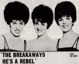 It was late in 1960 that VICKI HASEMAN, MARGO QUANTRELL and BETTY PRESCOTT planned their 'breakaway' from the original Vernons Girls, the 16-strong girl group from legendary TV shows like Six Five Special and Oh Boy. The trio headed straight for London where they bagged themselves a manager, Peter Walsh, who also handled acts like the Brook Brothers. Dubbing themselves the Breakaways, they began their recording career at Pye Records in 1962 with a stiff-corseted version of the Crystals' 'He's A Rebel'. It was at Pye that they began what was to become their staggeringly prolific career as a backing group, their first session being Joe Brown and the Bruvvers' #2 hit 'A Picture Of You'. The label's A&R man Tony Hatch, who knew a good thing when he heard one, soon had them singing behind acts like Chubby Checker, Jimmy Justice, Julie Grant and Mark Wynter too. Before long they were also working for Decca, EMI and Philips, and for smaller labels like Oriole and Ember. 1962 also saw the Breakaways take to the road, as a support act for Sam Cooke and Little Richard on a package tour of the nation. They made their celluloid debut in the pop extravaganza Just For Fun, accompanying Joe Brown on two songs, and also notched up appearances on TV's Thank Your Lucky Stars.