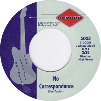 Die Platte erschien 1965 auf Gemcor 5003.