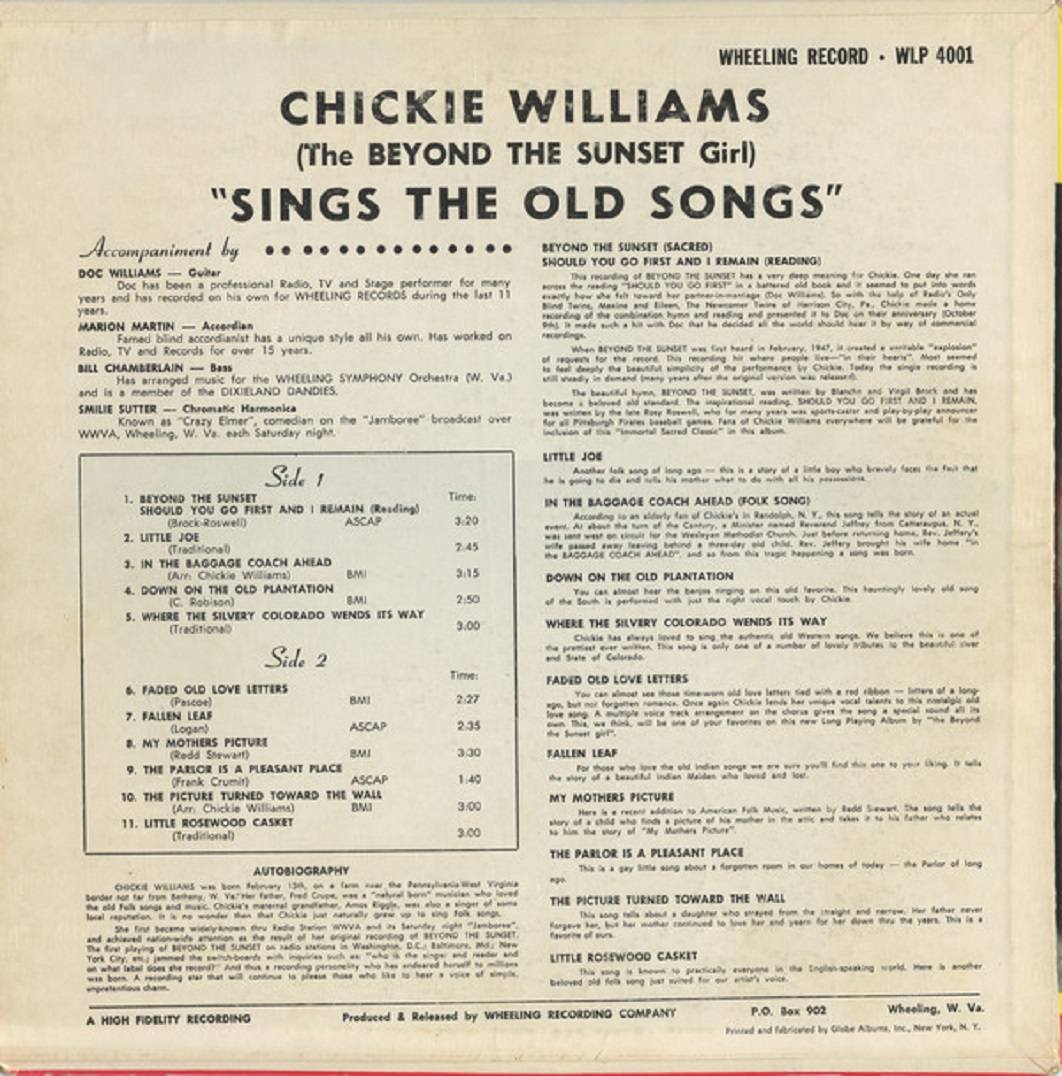 ?? 51….1001-A….SHOULD YOU GO FIRST (Reading) Vocal And Reading By "CHICKIE WILLIAMS" WITH DOC WILLIAM'S BORDER RIDERS..Beyond The Sunset/-B….DOC WILLIAM'S BORDER RIDERS Vocal By "CHICKIE WILLIAMS"..Bright Red Horizon