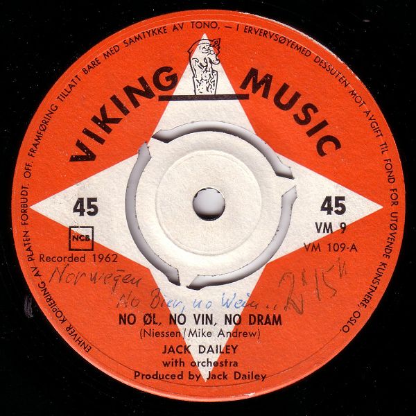 ?? 62....VM 9....JACK DAILEY with orchestra..No Øl, no Vin, no Dram (VM 109-A)/JACK DAILEY with choir and orchestra..Ballad Of The Vikings (VM 109-B)