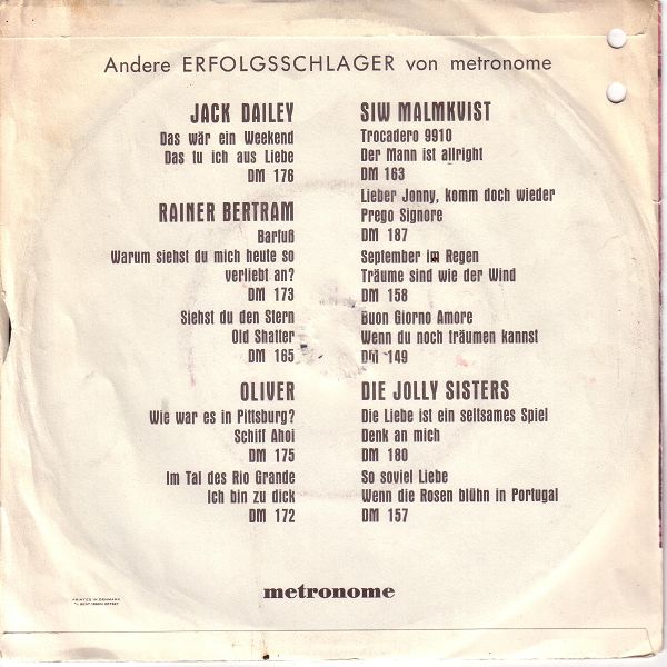 06 60….DM 176….JACK DAILEY Orchester Frank Barclay..Das wär ein Weekend/Das tu ich aus Liebe (in englischer Sprache: METRONOME B 1418)