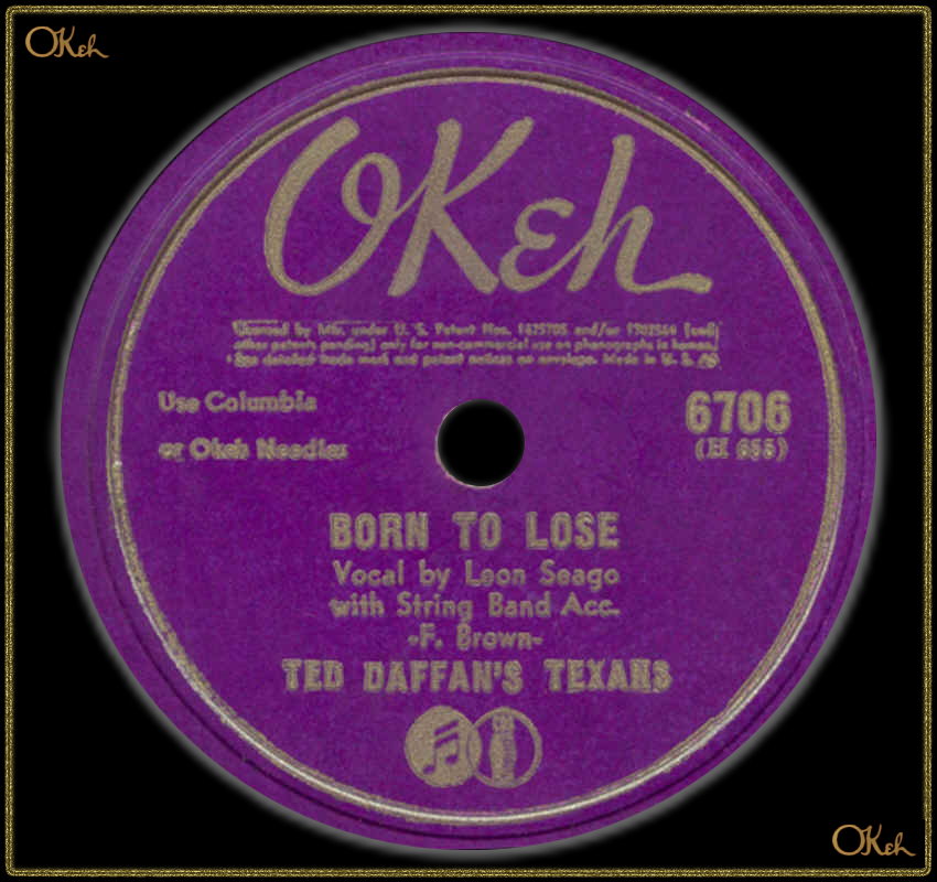 10 43….6706….TED DAFFAN'S TEXANS Vocal by Leon Seago with String Band Acc. ..Born To Lose/TED DAFFAN'S TEXANS Vocal Duet by Chuck Keeshan and Leon Seago with String Band Acc. ..No Letter Today