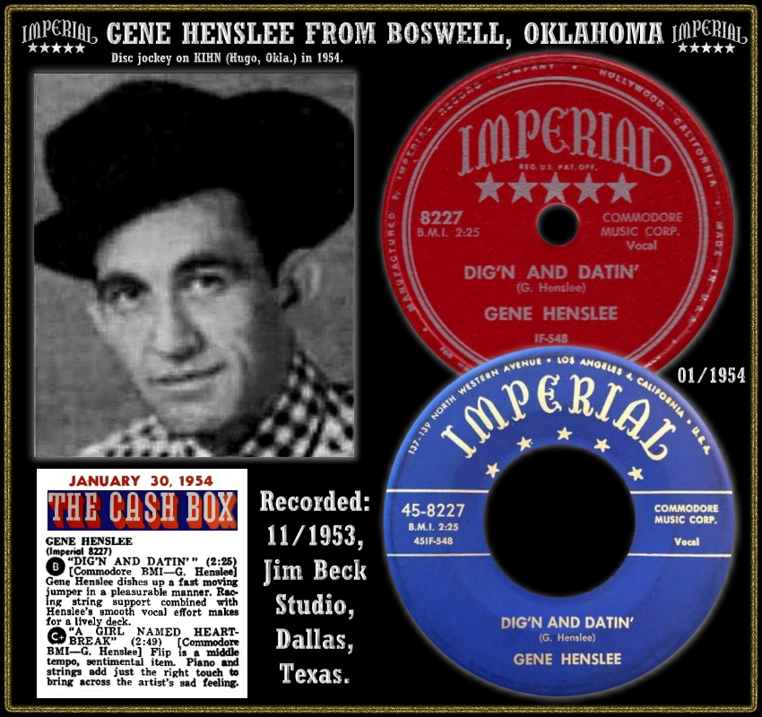 Um 1954 war GENE HENSLEE auf Imperial aktiv. Heute eher einer