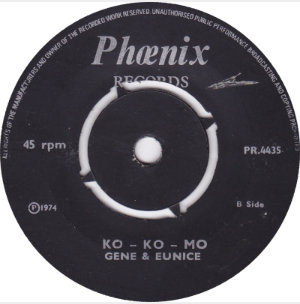 Durch die vielen Cover-Versionen scheint mir "Ko Ko Mo" prädestiniert für ein Songtitel-Forum. Der Song wurde laut Angabe auf der ersten Schellack-Veröffentlichung (COMBO 64-A) von F. Wilson und V. Haven geschrieben, wobei es sich bei F. Wilson um Forest Gene Wilson, also Gene, handelt und V. Haven ein Pseudonym des Songwriters und Musik-Produzenten Jake Vernon Haven Porter, in der Branche kurz Jake Porter genannt, ist. Erst bei der 45er kam Eunice Levy, also Eunice, vermutlich als Gene's Hommage an seine Partnerin Eunice, dazu. Ein wenig erinnert es mich an "All Shook Up", allerdings mit einem völlig anderen Hintergrund.