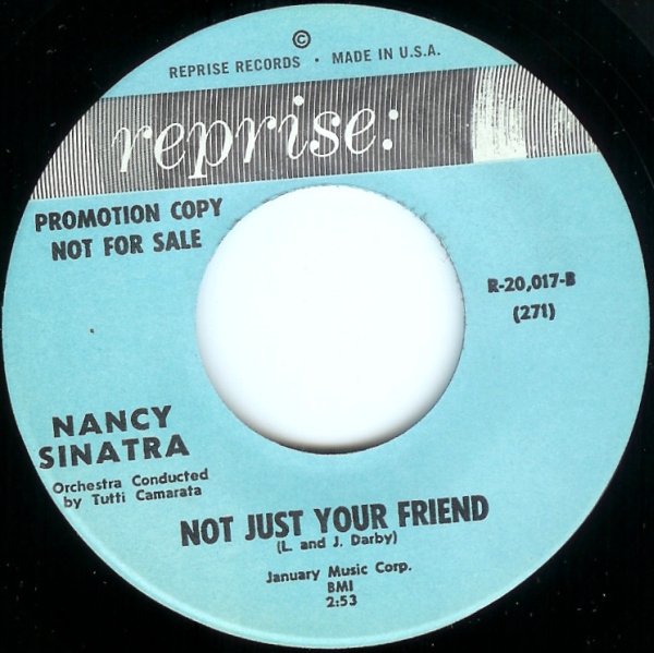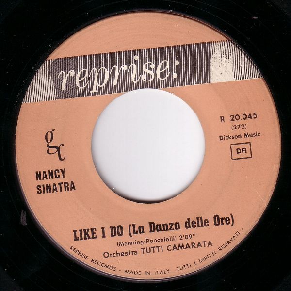 1961 unterschrieb sie bei der Plattenfirma ihres Vaters REPRISE und bereits mit ihrer zweiten Single erreichte sie Platz zwei in den Charts. Allerdings nicht in ihrer Heimat, sondern in Italien. Der von Dick Manning bearbeitete "Tanz der Stunden" aus der italienischen Oper "La Gioconda" von Amilcare Ponchielli ist im Enstehungsland dieses Titels als "Like I Do" offensichtlich sehr gut angekommen. Erst im Oktober 1965 gelang ihr erster Chart-Eintritt in den USA, "So Long Babe" erreichte aber nur Platz 86. Doch im Jänner 1966 konnte sie mit "These Boots Are Made For Walkin'" die Spitze der Charts erklimmen. In diesem Thread möchte ich aber nur ihre Aktivitäten in der erweiterten R & R - Aera behandeln. Hier daher die Fortsetzung