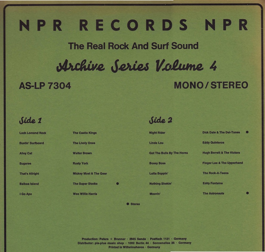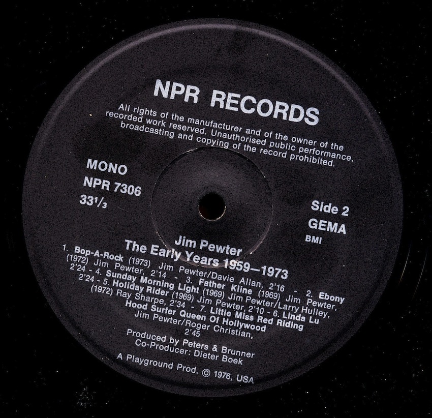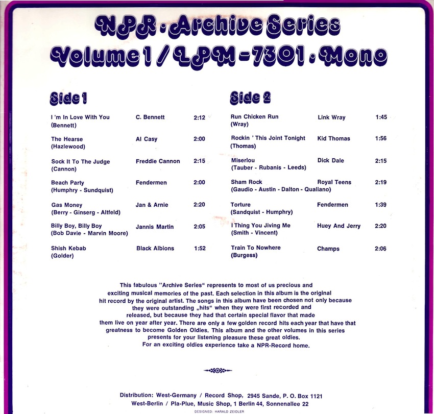 NPR Records wurde 1973 von zwei wackeren Friesen gegründet, da es bis dahin aus den 50er und 60er Jahren in Deutschland zwar viele bekannte Interpreten auf Vinyl zu kaufen gab, aber weniger bekannte Künstler hatten hier keine Chance auf Veröffentlichung.