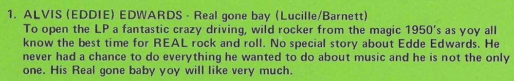 Dieses RCA-Customer-Servic war für die Zukunft schon was ganz Besonderes. Da ging man hin, ließ sich eine Single machen und mehr als fünfzig Jahre später freuen sich dann diverse Sammler über ihr wertvolles Einzelstück, so wie zum Beispiel hier bei Alvis (Eddie) Edwards.