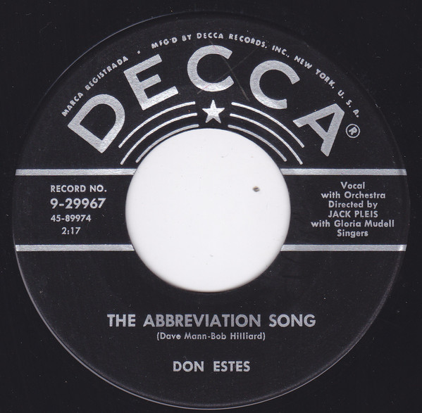 06 56....9-29967....DON ESTES..Shattered Dreams (45-89977)/Abbreviation Song (45-89974)