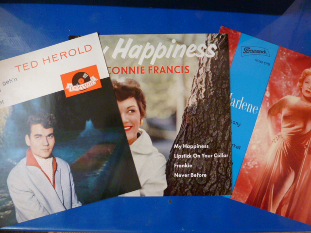 Dazu noch drei schöne EP-Werbecover ohne Rückseiten: Ted Herold, Connie Francis und Marlene Dietrich (Polydor- MGM-Brunswick) Alle ca. frühe 1960er Jahre und alle bei DGG-Labelgruppe.