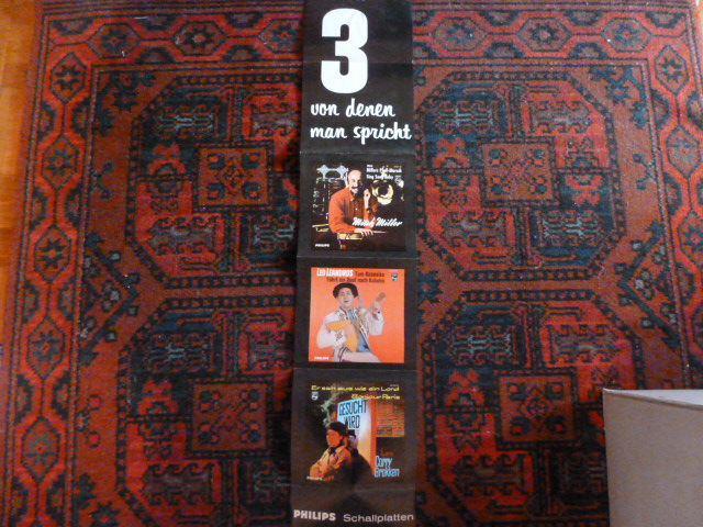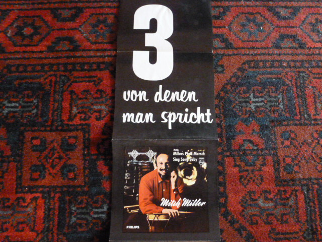 Dazu noch ein mehrfach auffaltbares Wandbild mit drei Bildcovern aus einem alten Plattengeschäft (mit Covern von Mitch Miller, Leo Leandros und Corry Brokken)