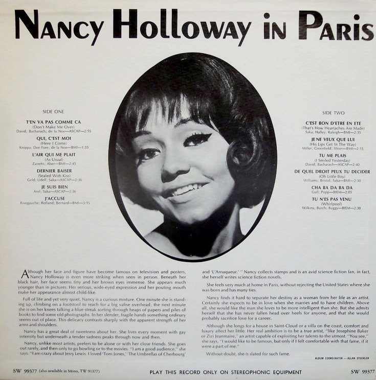 Nancy Holloway am 11.12.1932 in Cleveland, Ohio als Nancy Brown geb., war hauptsächlich in Frankreich populär.