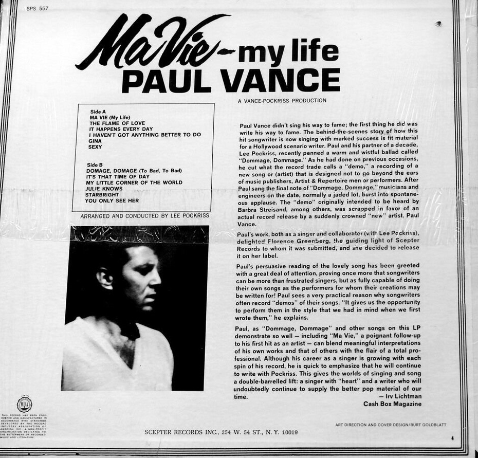 gesungenen Song von Jamie Coe), dann mit einer Scepter-Single...