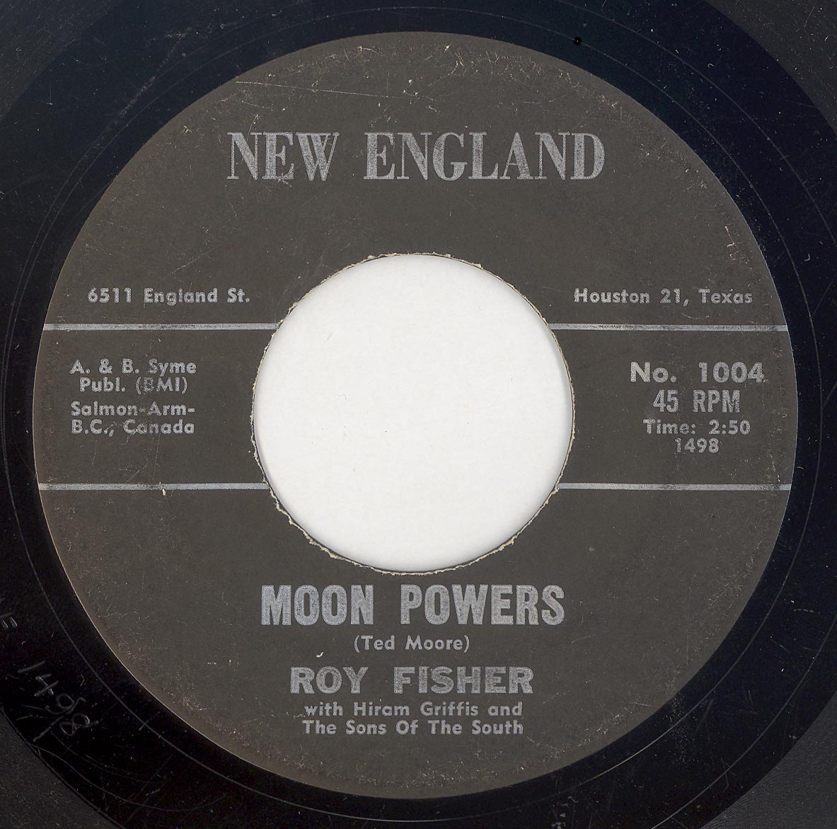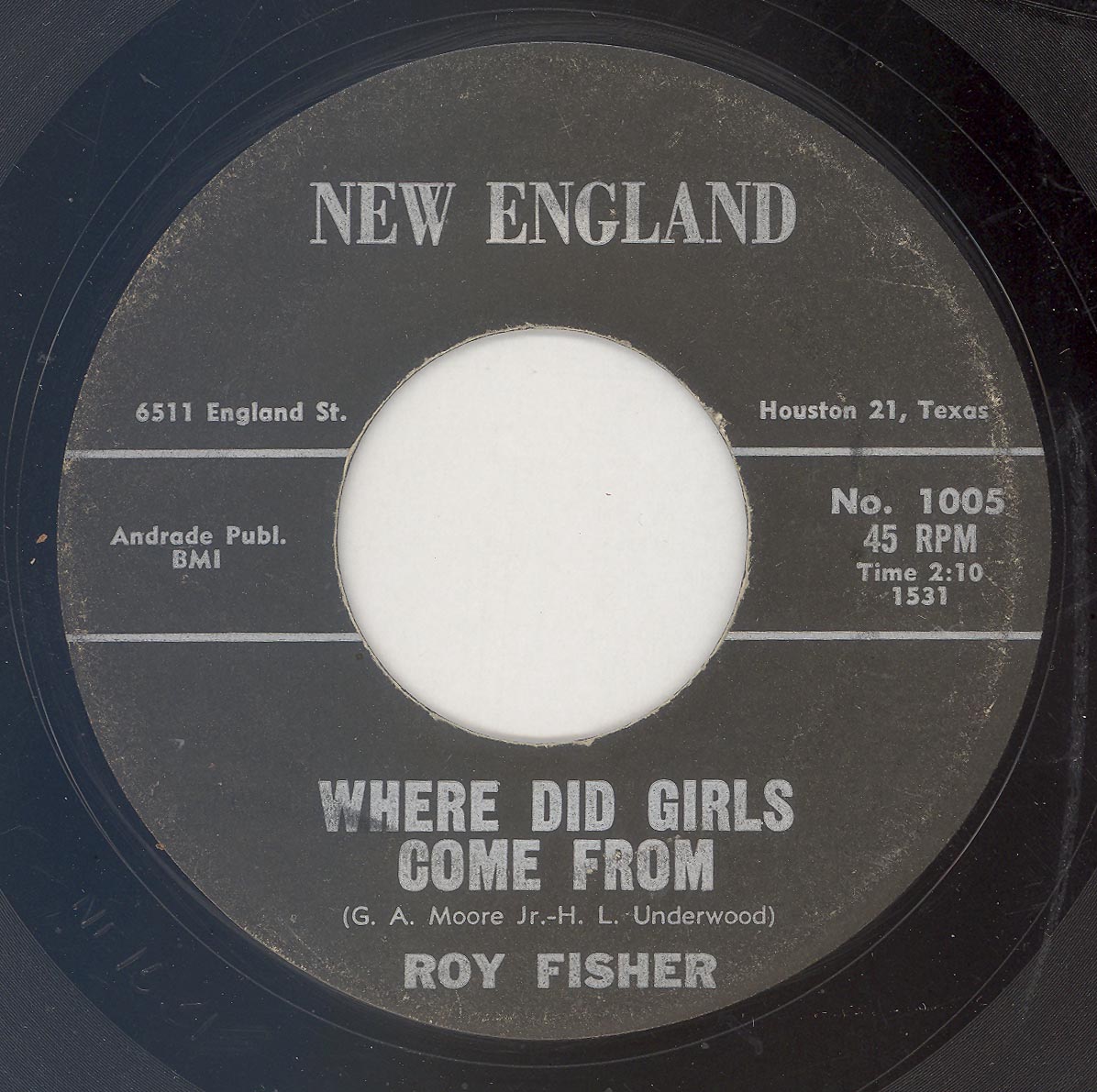 Bei den Fishers habe ich kein Glück. Wie für Bud konnte ich auch für Roy Fisher nichts brauchbares finden. Aber was Label-Scans betrifft war ich im Netz etwas erfolgreicher. Bei "HILLBILLY-RESEARCHER" fand ich seine zwei NEW ENGLAND-Singles. Über die Identität des Roy Fisher aus Indiana mit jenem aus New England - nein, natürlich aus Houston, Texas - gibt es bei "HILLBILLY-RESEARCHER" gewisse Zweifel. Ich habe daher versucht, diese Zweifel zu beseitigen, was mir aber bisher leider nicht gelungen ist.