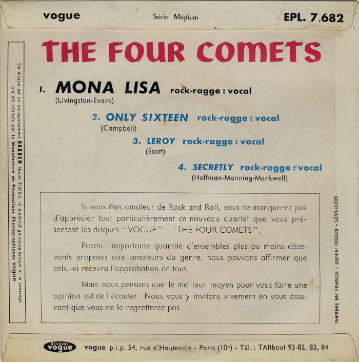 ?? 59....BES 704....ROCK-RAGGE and his four Comets..Only Sixteen (BN45 1007)/Mona Lisa (BN45 1008)