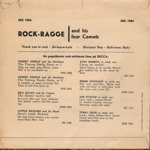 ?? 58….SDE 7084….ROCK-RAGGE and his four Comets..Tech You To Rock - Be-Bop A-Lula/Bluejean Bop - Ball-Room Baby