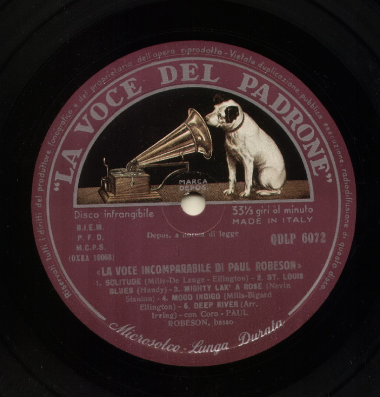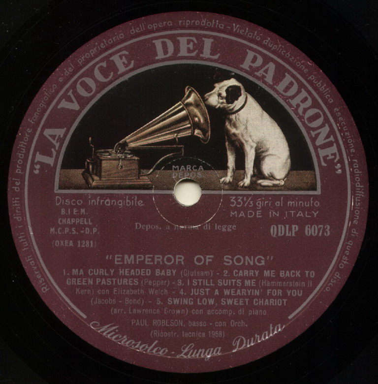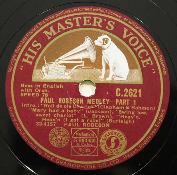07 27….20604-A….Paul Robeson, Bass, Piano accomp.-Lawrence Brown..Hear, De Lam's A-Cryin'/-B….Ezekiel Saw De Wheel