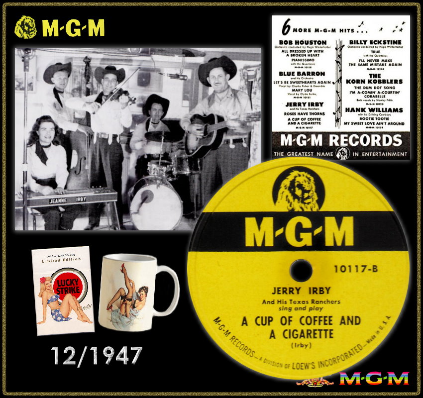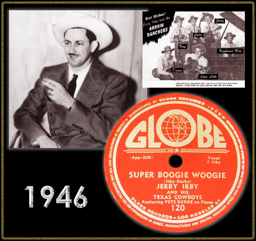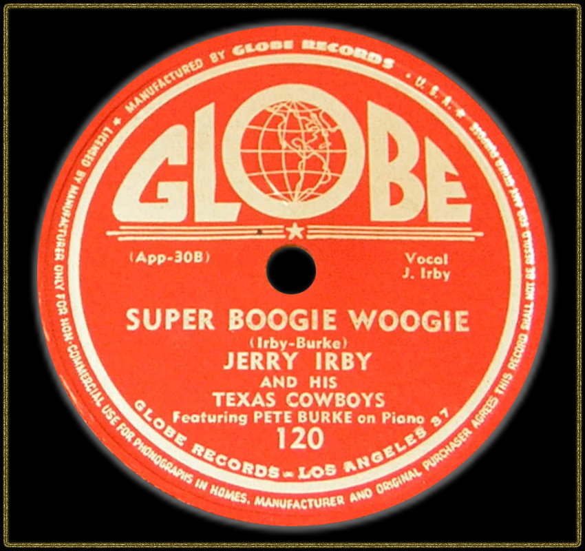 The Los Angeles GLOBE label, a newly formed independant recording company, latched on with Jerry Irby’s success with “Nails In My Coffin“ and promptly signed him to a recording deal. They wasted little time in having Irby re-record “Nails In My Coffin“ for release on GLOBE. Irby’s band at that time, The Texas Ranchers, including his old compatriot Elmer Christian, steel guitarist "Deacon" Evans, and pianist Pete Burke. The latter musician, Pete Burke, is worthy of special mention as his distinctive performances on the pianoforte is to be heard on scores of Irby’s recordings. Burke himself later made some solo recordings for the HUMMINGBIRD label. It is also likely that Irby and his band are featured on Elmer Christian’s GLOBE recordings.