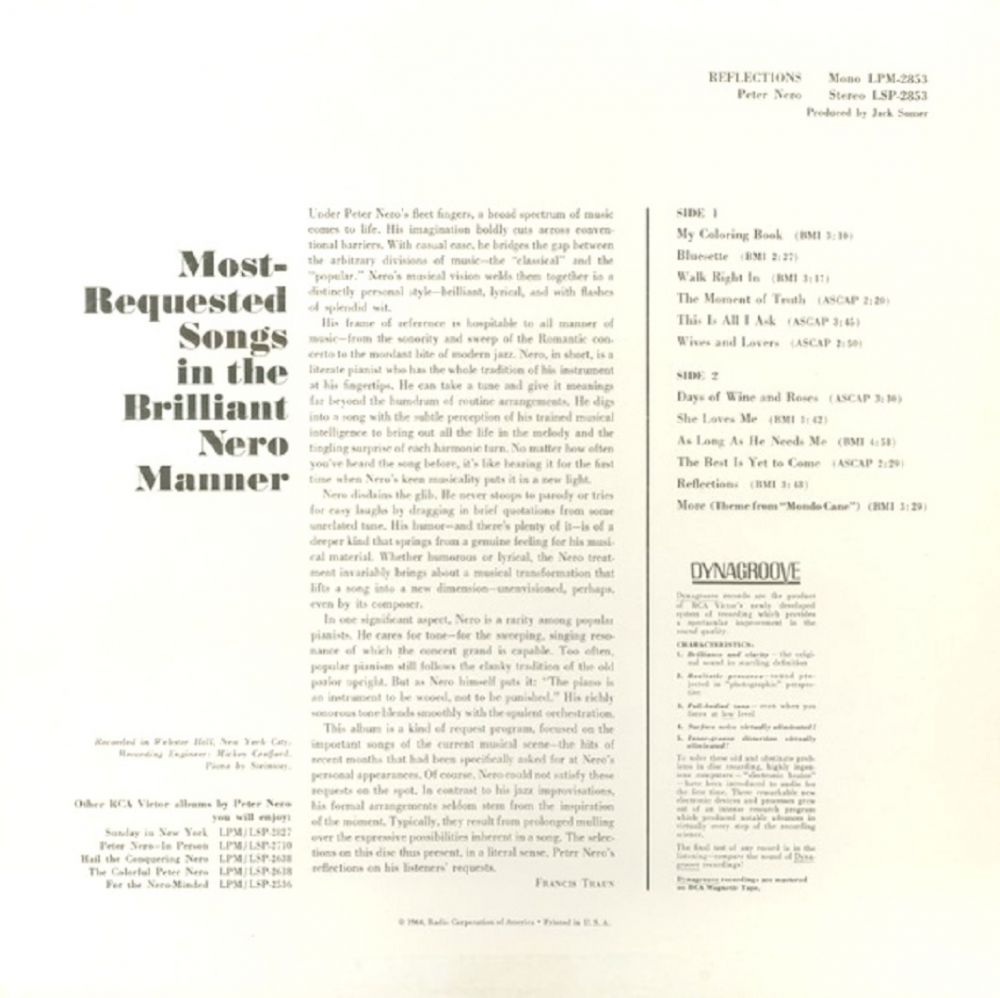 Nero recorded his first album in 1961, and won a Grammy Award that year for "Best New Artist." Since then, he has received another Grammy, garnered ten additional nominations and released 67 albums. Nero's early association with RCA Victor produced 23 albums in eight years. His subsequent move to Columbia Records resulted in a million-selling single and album - Summer of '42.