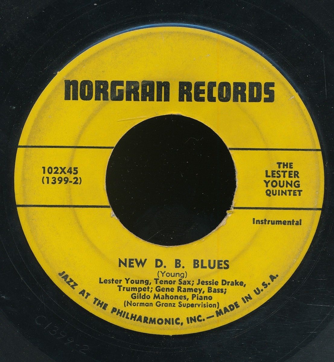 05 54....102X45....Lester Young, Tenor Sax; Jessie Drake, Trumpet; Gene Ramey, Bass; Gildo Mahones, Piano - THE LESTER YOUNG QUINTET..Tenderly (1398-3)/New D. B. Blues (1399-2) *)