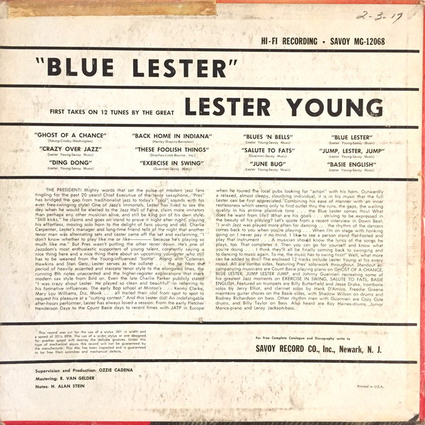 Der Tenor-Saxophonist, gelegentlich auch Klarinettist, Lester Young, auch "Pres" oder "Prez" genannt, wurde am 27. August 1909 in Woodville, Mississippi, als Lester Willis Young geboren und verstarb am 15. März 1959, erst 49-jährig, in New York City.