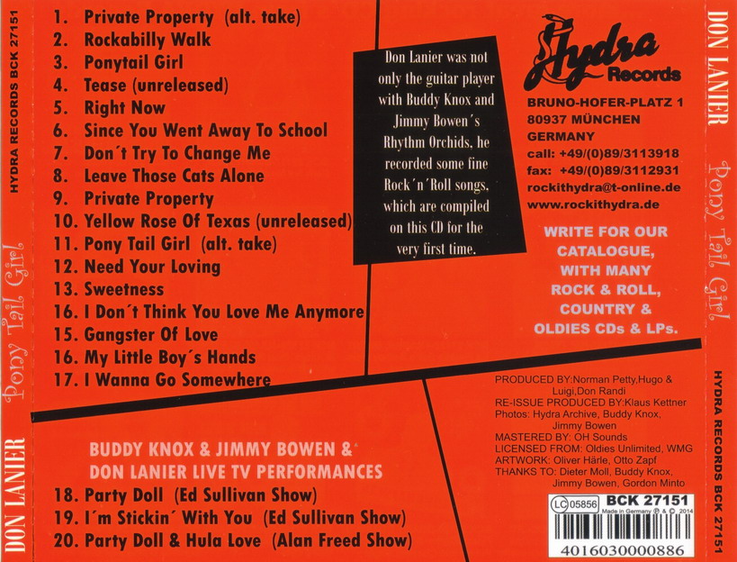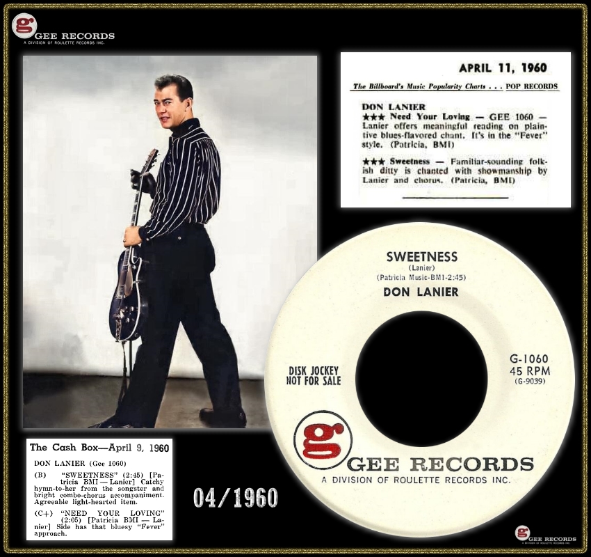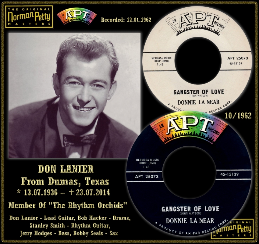 Donny Lanier zählte bis Ende 1958 zu den Rhythm Orchids (& Buddy Knox). Er war parallel und auch zukünftig solistisch tätig: