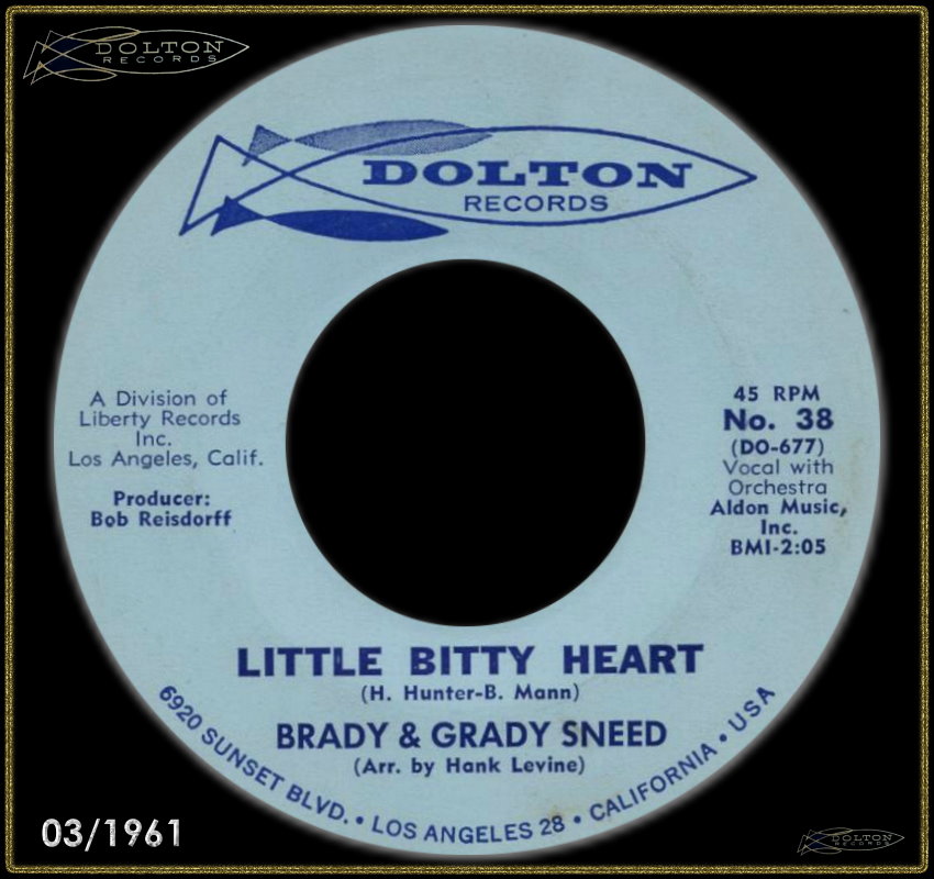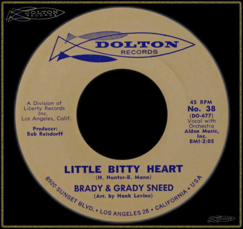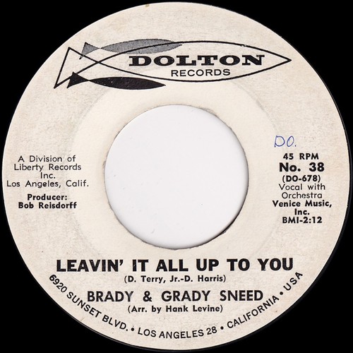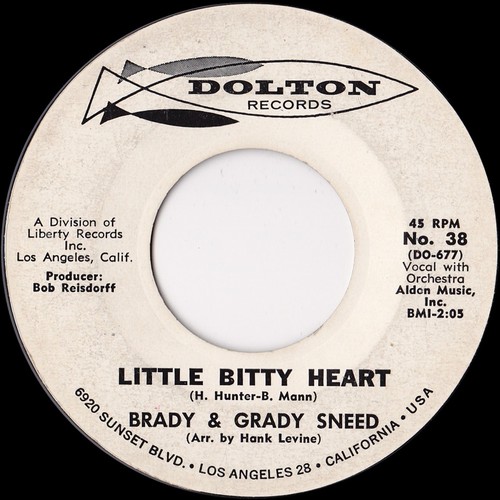 This duo of identical twins was Brady and Grady Sneed who released several songs together in the 1960s such as “I’m Leaving It All Up To You”, “Little Bitty Heart”, “Blue Bird”, “Just a Lot of Talk” and “Brighter Side”. In 1965 they appeared on the TV show Shindig with a line-up that included The Rolling Stones, Sonny & Cher, Jimmie Rodgers, Bobby Sherman and Jackie DeShannon.