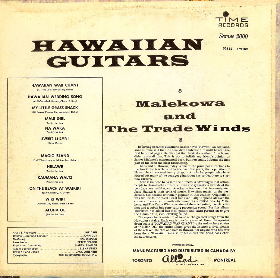 Hier soll es aber in erster Linie um die Tradewinds von Carmine Poppitt, Lead-Gesang und Akkordeon, gehen, der mit Dave Malatesta, Gitarre und Gesang, Walt Mateja, Saxophon und Gesang, und John Malatesta, Schlagzeug und Gesang, das Quartett bildete. Dudley Henriques war ihr Manager.
