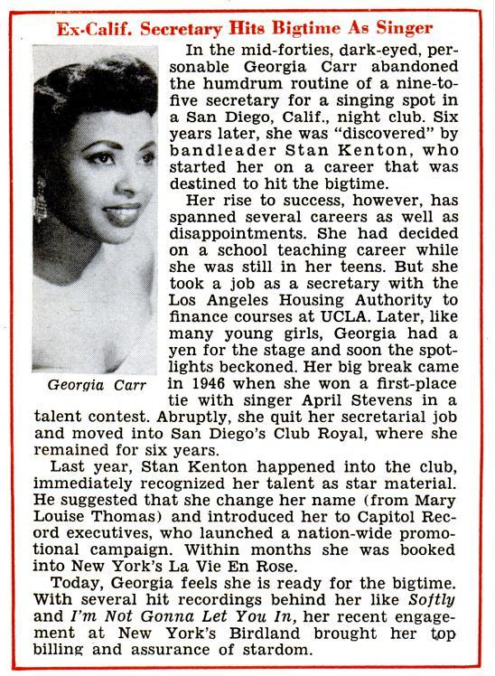 GEORGIA CARR kam 1946 durch einen Talentwettbewerb ins Rampenlicht.