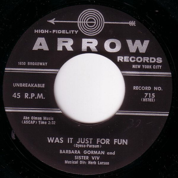 05 57....715....BARBARA GORMAN and SISTER VIV Musical Dir: Herb Larson..Was It Just For Fun (H5703)/8 O'Clock Date (H5704)