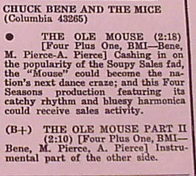 Die Single ROCK 101 von Chuck Bene befindet sich schon seit Jahrzehnten mit unvollständigen Daten in meinen Aufzeichnungen. Als Billy das ROCK-Label unserer "Label Slide Show" einverleibte, sind mir die fehlenden Daten wieder bewusst geworden und mein Forscherdrang wurde stimuliert. Seinerzeit hatte ich nur Literatur zur Verfügung und jetzt kommt noch das Netz dazu, da müssen sich ganz einfach neue Fakten ergeben.