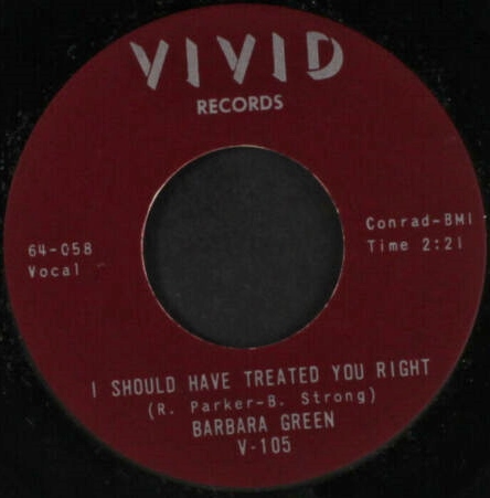 09 64….V-105….BARBARA GREEN..I Should Have Treated You Right (64-058)/Young Boy (64-059) (dann RENEE 5001)