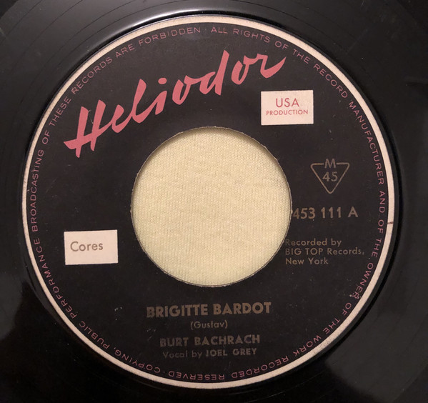 ?? 61....45-3086....Prod. arr. and Conducted by BURT BACHRACH Vocal by JOEL GREY..Brigitte Bardot (BG-1229)/45-3087….BURT and THE BACKBEATS Prod. Arr. and Conducted by BURT BACHARACH..Move It On The Backbeat (BG-1231)