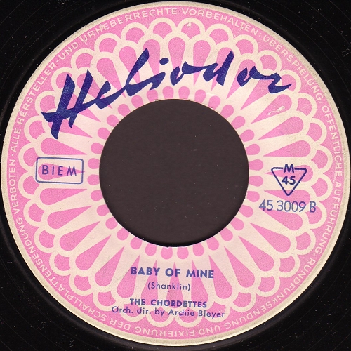 Original-Label: Cadence 1291 “Born To Be With You” und Cadence 1341 für “Baby Of Mine”, deutsche Matritzenherstellung H 8 ( August/1958), Composer von A : “Robertson” und B : “Shanklin”, Orch. Cond. By Archie Bleyer bei beiden Titeln, deutsche Platte auf rosa Label, Placierung Hitparade in den USA: „Born To Be With You “ 6/56, # 5 pop