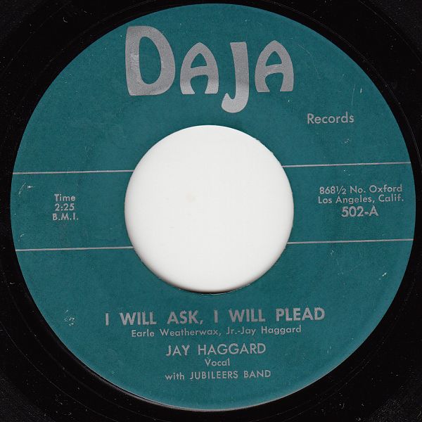 07 58....502-A....JAY HAGGARD Vocal with JUBILEERS BAND..I Will Ask, I Will Plead/-B….I Want You Now Honey Doll
