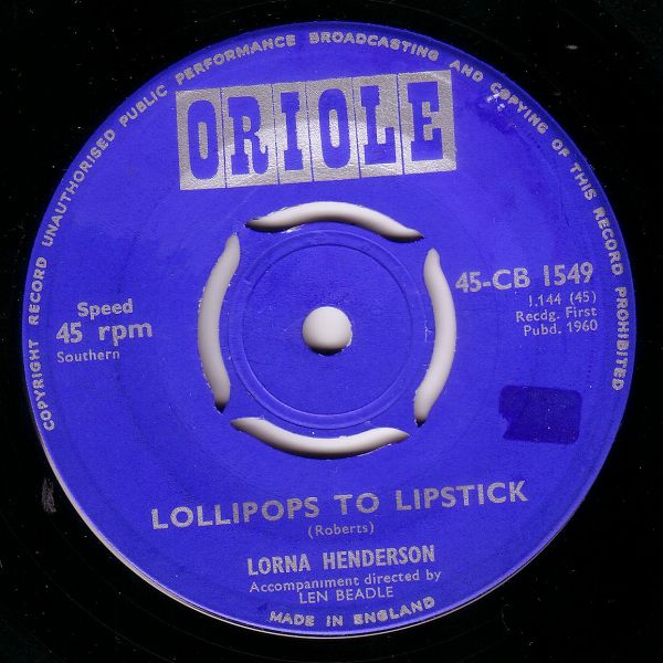05 60....45-CB 1549....LORNA HENDERSON Accompaniment directed by LEN BEADLE..Lollipops To Lipstick (J.144)/Steady Eddy (J.145)