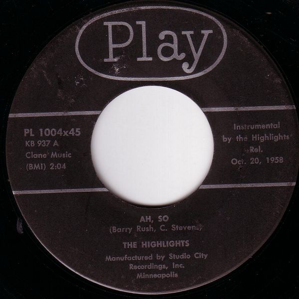 10 58....PL 1004 x 45....THE HIGHLIGHTS..Ah, So (KB 937 A)/Studio Blues (KB 937 B)