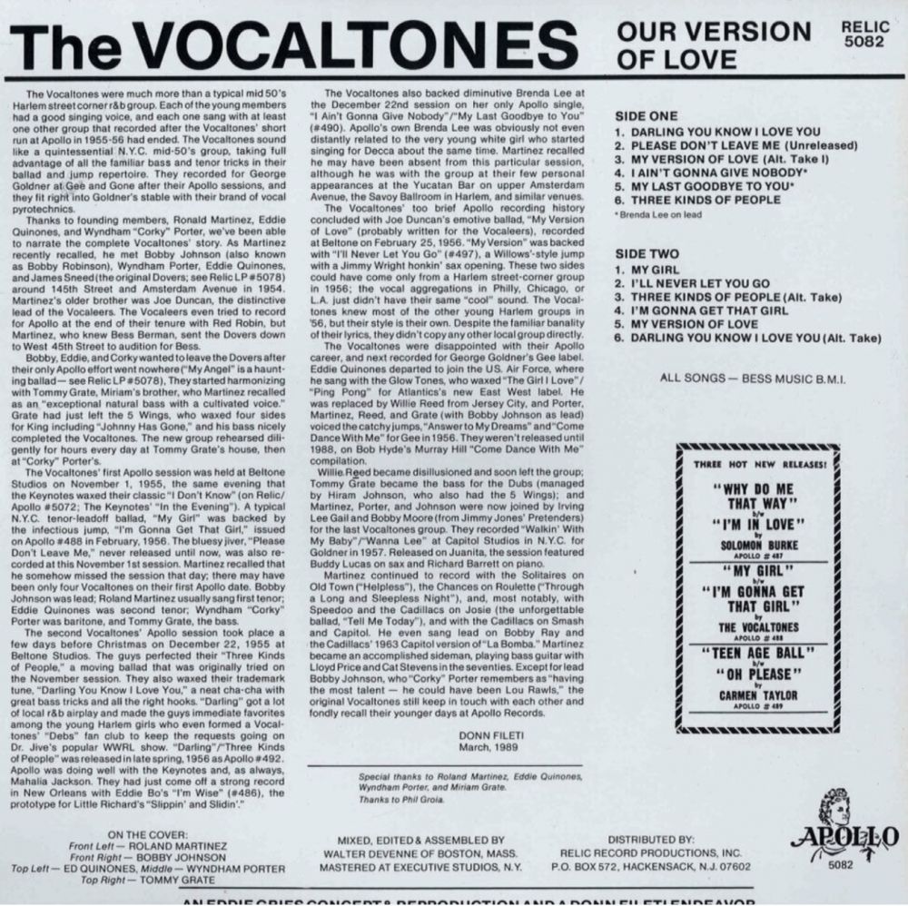 Apollo (472/473), bevor aus ihnen The Vocaltones wurden.