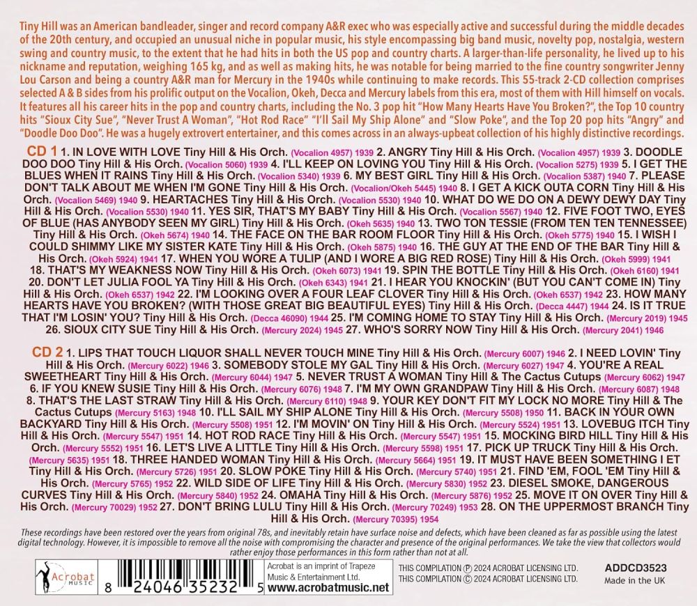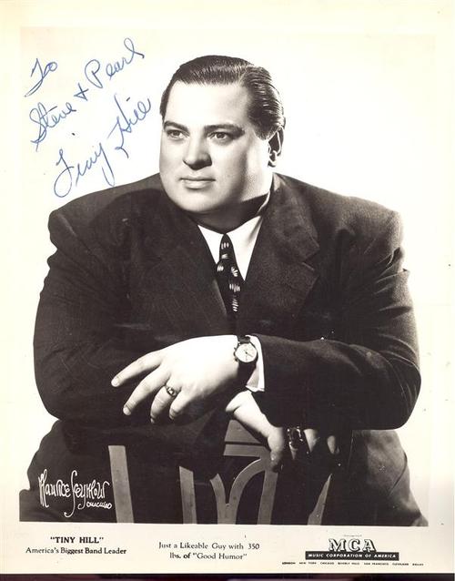 Der Band-Leader und Sänger Tiny Hill wurde am 19. Juli 1906 in Sullivan, Illinois, als Harry Lawrence Hill geboren und verstarb am 13. Dezember 1971. Er trug den Titel "America's Biggest Bandleader", er wog immerhin 166 kg.