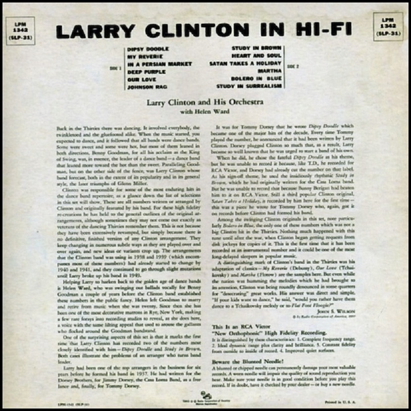 B….LARRY CLINTON And His Orchestra Vocal Chorus by Helen Lee and The Dipsy Doodlers..