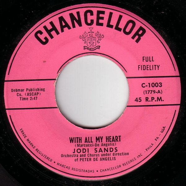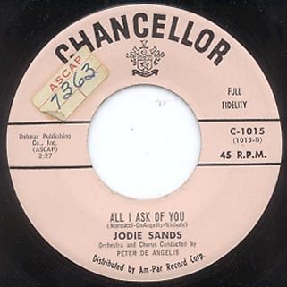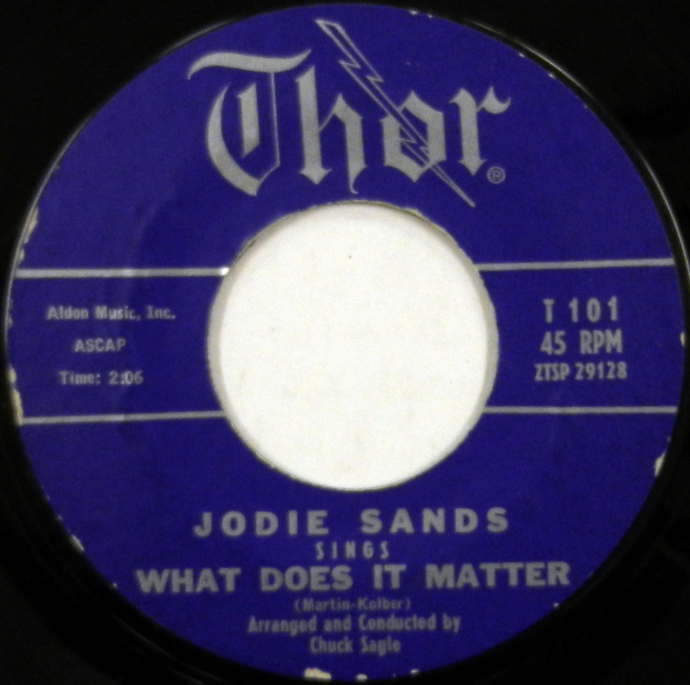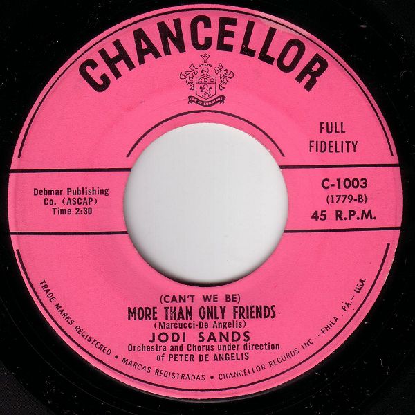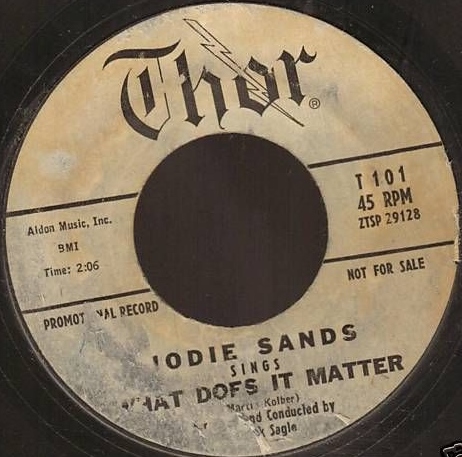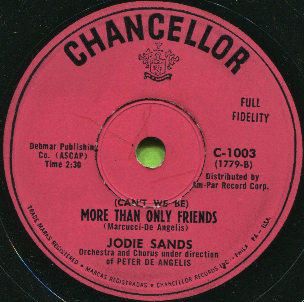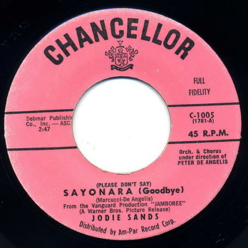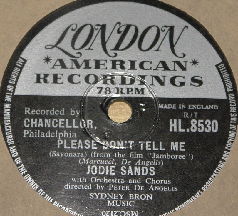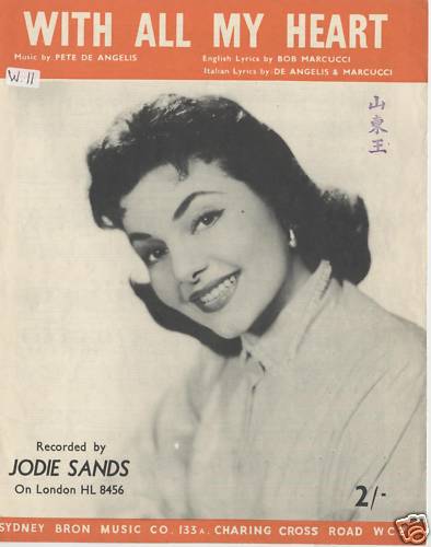 Jodie Sands schaffte im Juni 1957 einen US-Hit mit „With All My Heart“ (# 15 pop). In England kam „Someday“ (auf HMV POP 533) für 10 Wochen in die Charts mit höchster Placierung # 14 im Oktober 1958. Der Titel stammte aus dem Film „Sioux City Sue“ (1946) und wurde darin von Gene Autry gesungen. Im Laufe der Jahre entwickelte er sich zu einem Country- und Pop-Hit für zahlreiche Interpreten, darunter 1946 für Elton Britt, The Hoosier Hot Shots, 1949 für Vaughn Monroe und auch die Mills Brothers, dann auch 1960 als # 56 pop-Hit für Della Reese. Zu den Interpreten zählt auch Ricky Nelson, dessen US-LP-Song in England im November 1958 auf Single (London HLP 8732) bis auf # 9 der Charts schoss und dort 13 Wochen notiert war. Die entzückende Jodie Sands hatte auch Erfolge auf Ronnex Records in Belgien und Holland mit Songs wie „Love Me Again“ und „Solo a te mi amor“.
