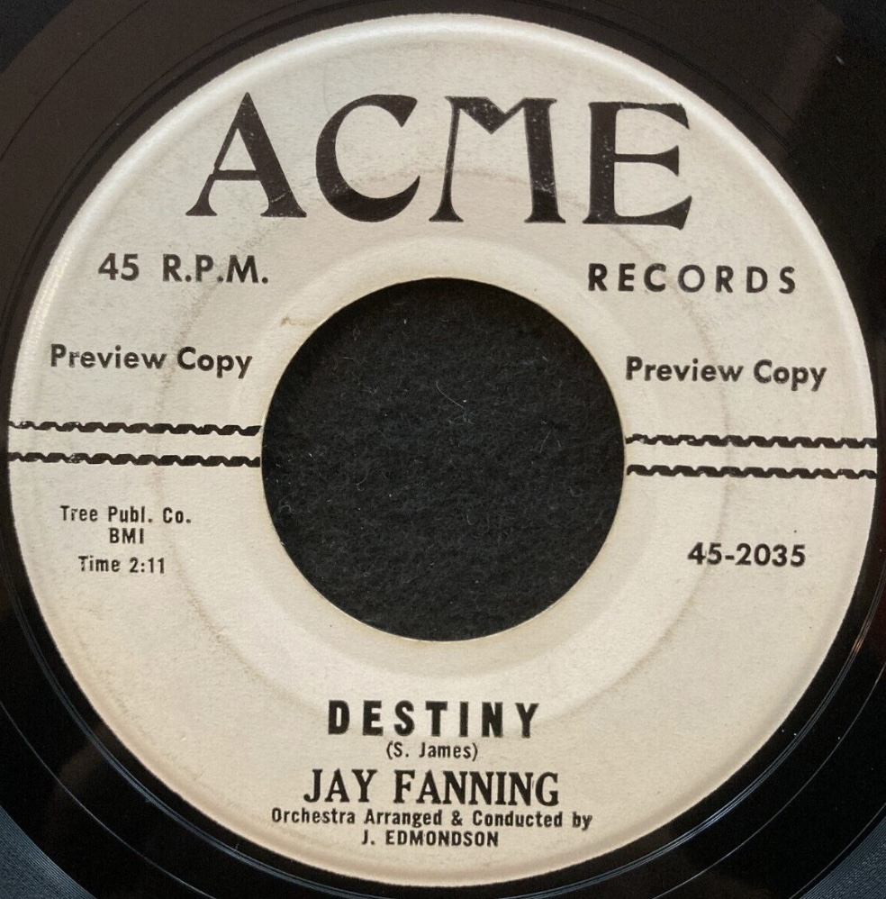 ein eher Unbekannter ist der aus Kentucky stammende Jay Fanning, der für das obskure Acme-Label vier Singles gemacht hat. Siehe dazu folgenden Link: