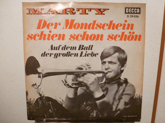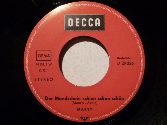 Marty (Trompeter), Der Mondschein schien so schön / Auf dem Ball der großen Liebe, deutsche DECCA-Single D-29026, rotes Etikett, Komponisten A-Seite: Munro-Arnie, Komponisten B-Seite: Dousset-Gaubert. Wer weiß was.??