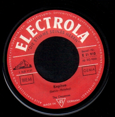 Ursprünglich auf meiner Suchliste gelandet, da ich den Titel "Tomahawk" von den Cheyennes für die Originalfassung des Ladi Geisler Titels "Tomahawk" (Polydor 24 825) hielt. Beim Vergleich der beiden Titel konnte ich jedoch keine Ähnlichkeit feststellen - beim genauen Hinsehen stellte ich dann auch fest, daß die Komponisten nicht identisch sind. Bei der Cheyennes Platte sind es "Stelvio - Holyday", bei der Ladi Geisler Platte "Martin". :?
