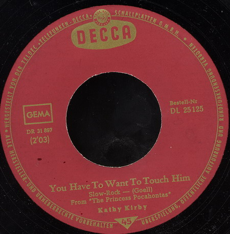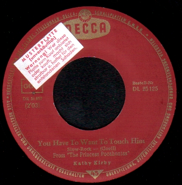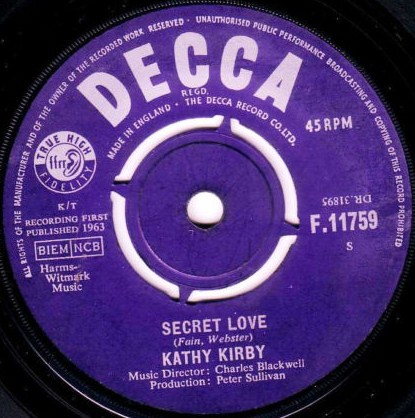 Kathy Kirby - Secret Love / You Have To Want To Touch Him (from "The Princess Pocahontas") / Decca DL 25 125 / ca. 1963