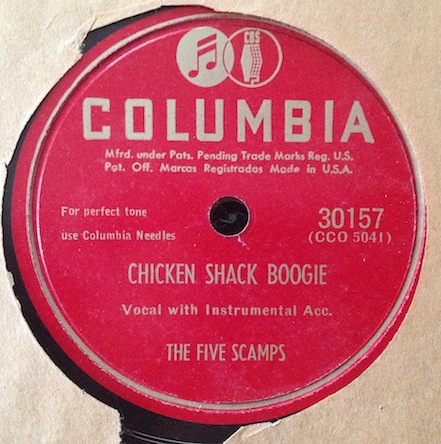 Kurze Storys zu ihren drei 45 RPM-Singles: COLUMBIA 05 51....4-30242....THE FIVE SCAMPS - Vocal Chorus by Wyatt Griffin and Trio with Instr. Acc. ..Gonna Buy Myself A Mule (ZSP 6609)/THE FIVE SCAMPS..Dance Boogie (ZSP 6607)