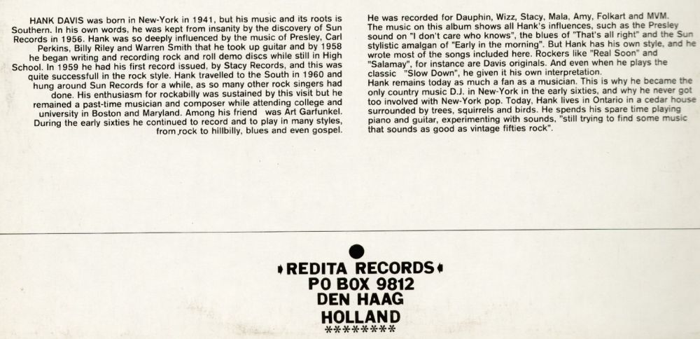 Wie jeder andere in New York geborene und aufgewachsene Teenager wuchs Henry „Hank“ Davis mit der Standardmusik auf, die Mitte der 50er Jahre regelmäßig im Radio lief. Doch bald lernte er, dem Mainstream zu entfliehen, indem er Country- und Rhythm-and-Blues-Sender hörte. Kurz darauf entdeckte Hank die Musik, die über das Sun-Label aus Memphis kam, besuchte einige von Alan Freeds Rock’n’Roll-Konzerten in New York und begann, bewaffnet mit einer billigen Gitarre, die er bei Sears gekauft hatte, mit einigen Schulkameraden seine Lieblingslieder von Carl Perkins, Johnny Cash oder Billy Lee Riley zu spielen.