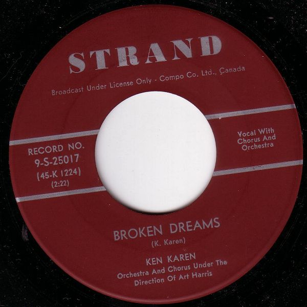 06 60....25017….KEN KAREN Orchestra and Chorus Under the Direction of Art Harris..Broken Dreams (K-1224)/You're The Only One I Love (K-1225)